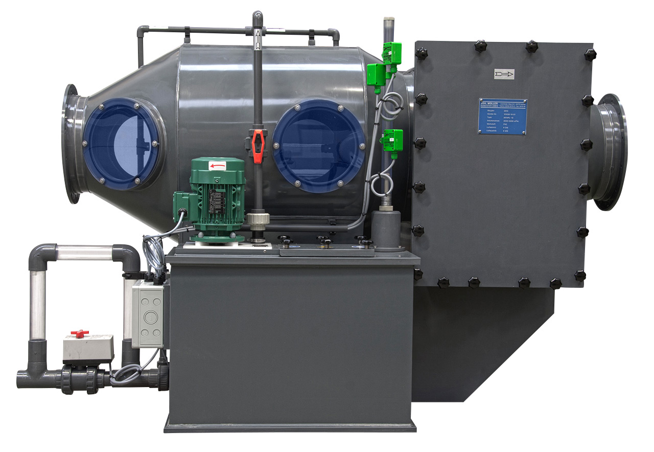 Wir bauen Ihre PVC-Lüftungsanlage nach Maß, in liegender Ausführung, mit hocheffizientem Abluftwäscher.