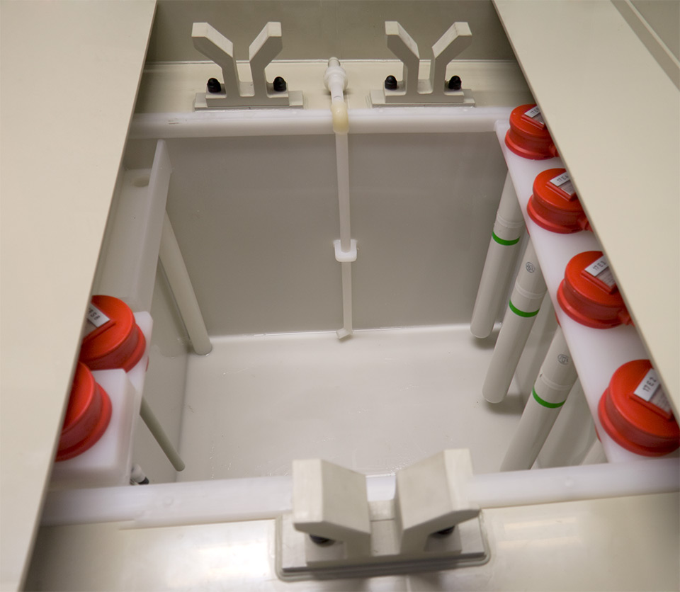 - Baumann-Abzug komplett aus PP gefertigt, inklusive Volumenstromüberwachung (DIN 12924), mit optionaler Versorgung und Entsorgung der Abwässer und Säuren.
